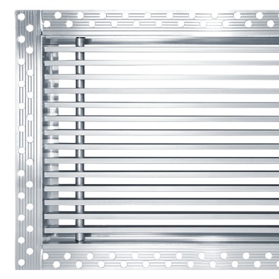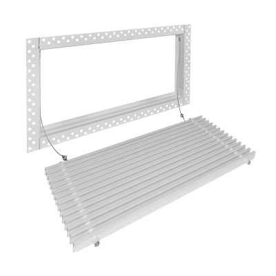 Данная решетка подходит для монтажа на любую поверхность под финишную отделку. Рама оснащена «полкой» 1,9 мм и рифлеными краями для большей адгезии финишного материала – шпатлевки, цемента. Решетка имеет съемную центральную часть с декоративным экраном. Она крепится к корпусу прочными металлическими тросиками, легко снимается для очистки и удобного обслуживания.