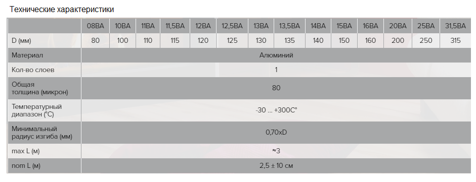 • Воздуховоды спирально-навивные из алюминиевой фольги длиной до 3м;