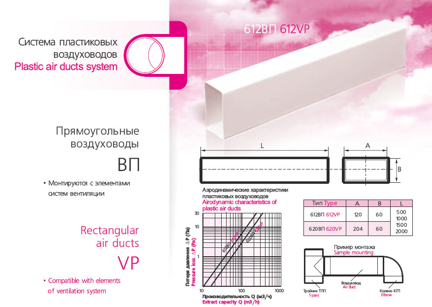 Воздуховод прямоугольный ПВХ 60х120, L=0,5м